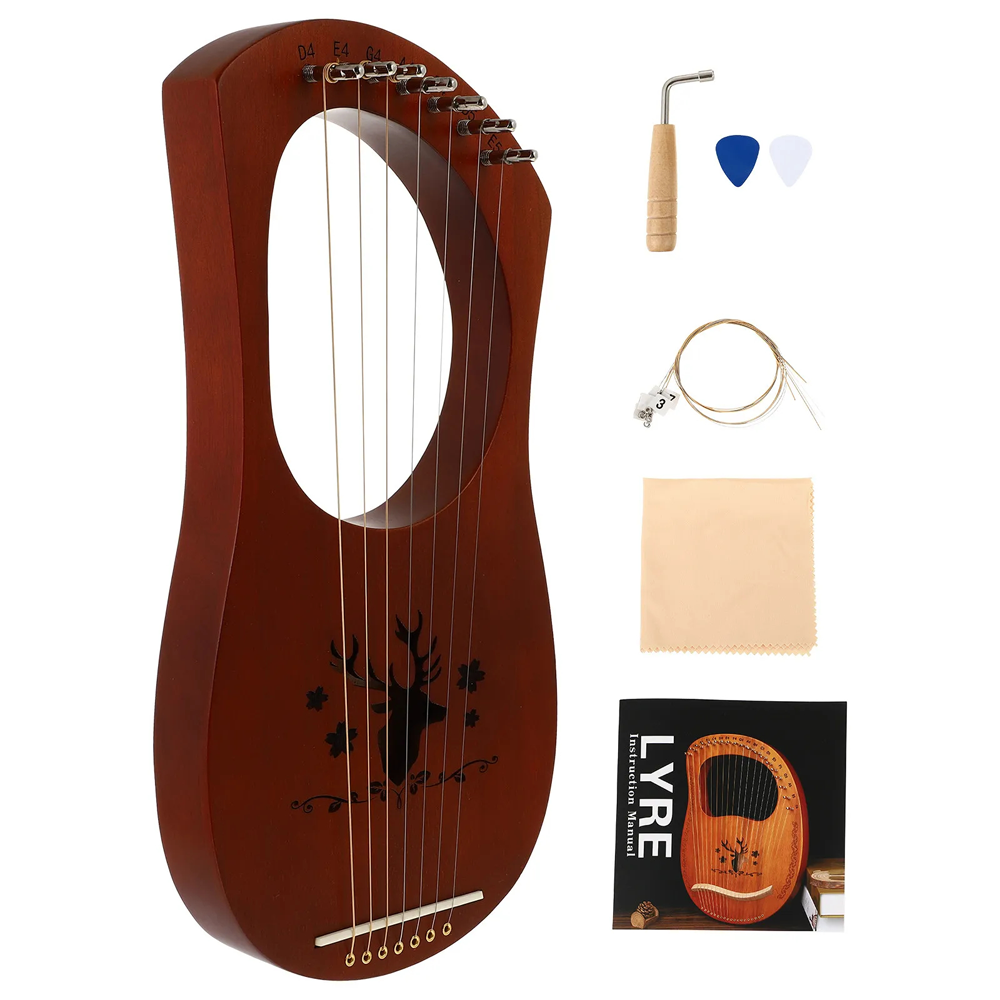 1Set Wood String Lyre Harp 7 Strings Smooth Finish with Cleaning Cloth Exquisite Craftsmanship Retro Harp Perfect for Mind